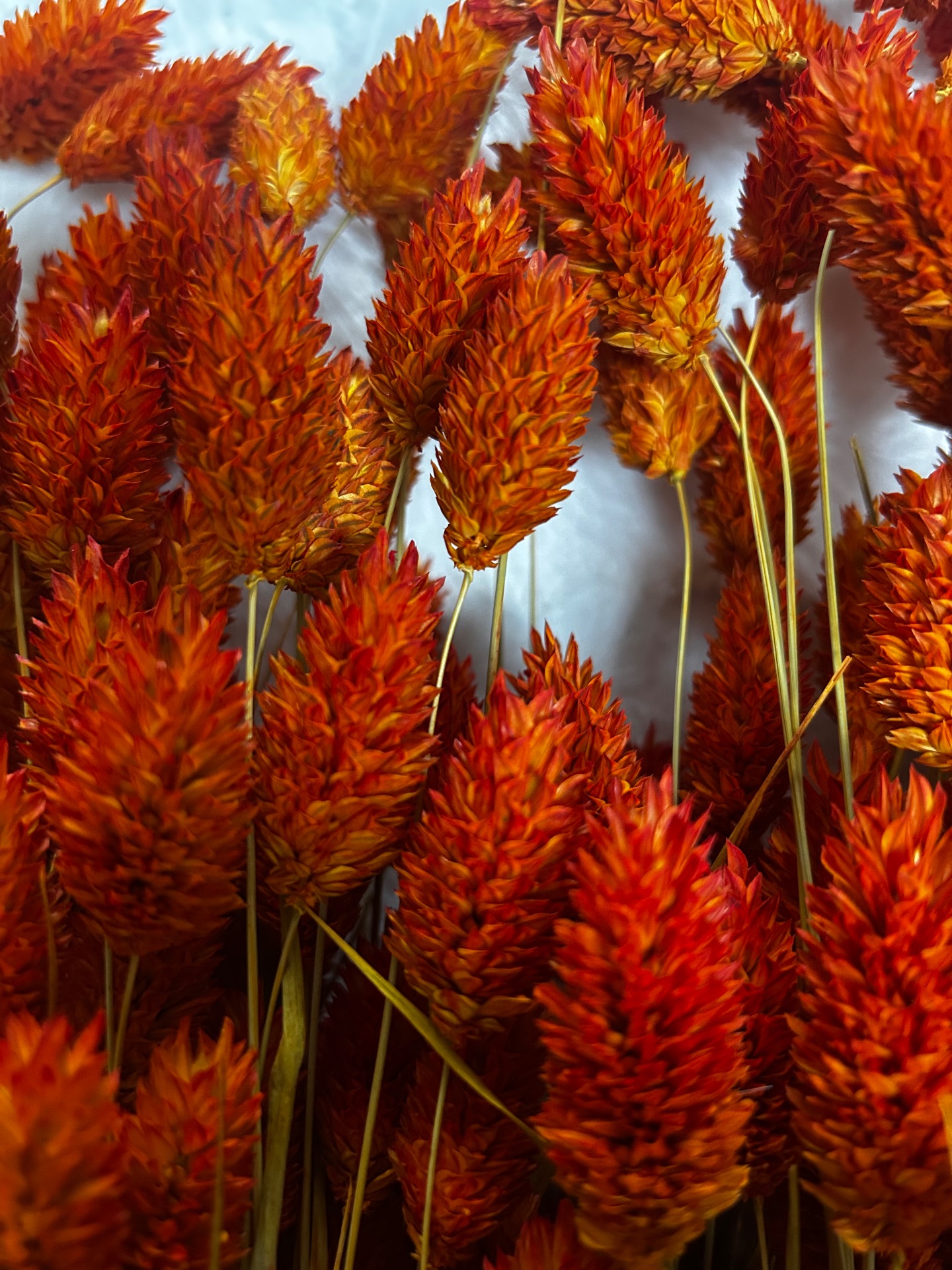 Sušené oranžové Phalaris, ideální prvek pro květinové aranžmá ve venkovském stylu. Budete nadšeni dynamickou oranžovou barvou a jedinečným šarmem.