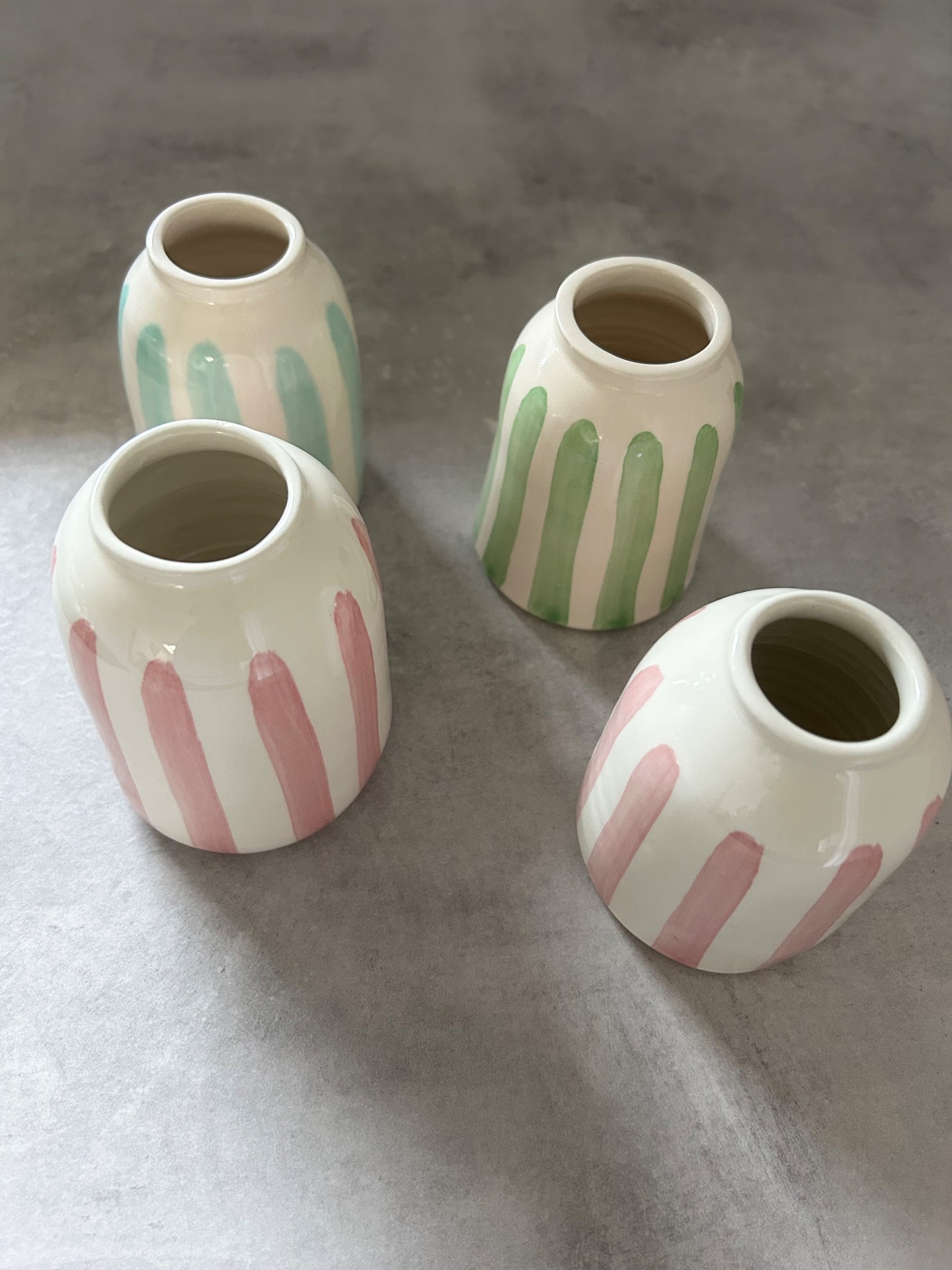 Naše váza je ručně vyráběna pod sluncem Portugalska, království keramiky. Každá váza má ručně malované pruhy, díky čemuž je jedinečná.